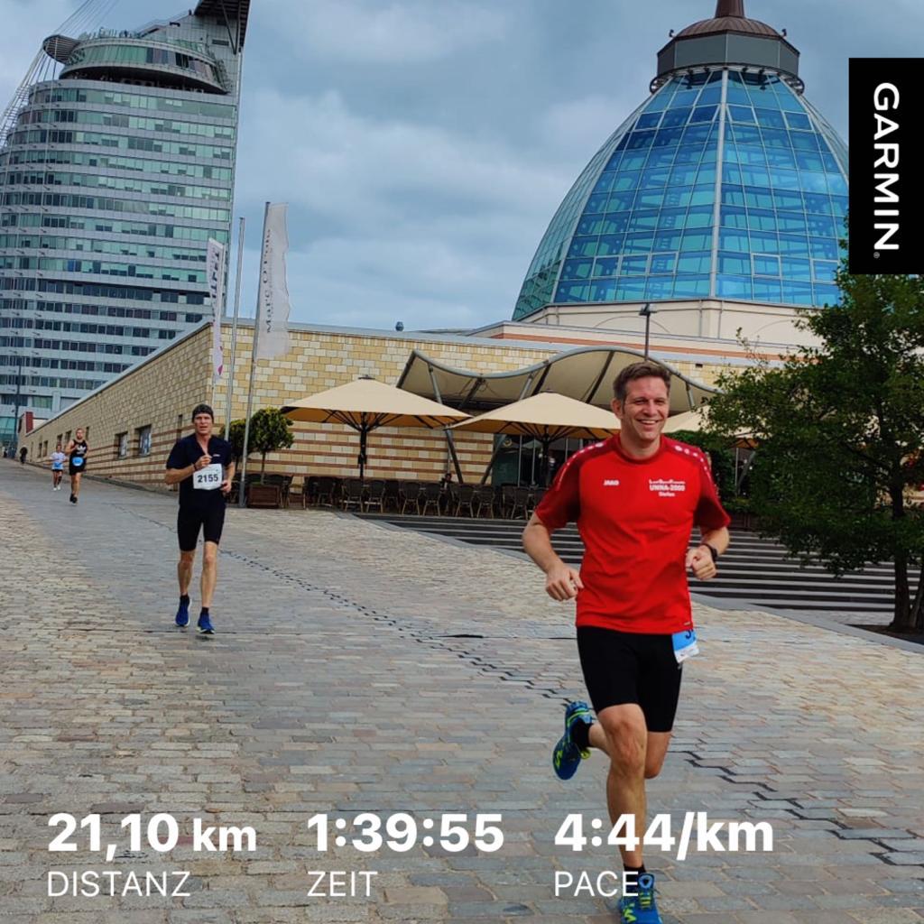 Stefan Wozny startete am 18.08.2022 beim 18. City Marathon Bremerhaven auf der Halbmarathon-Distanz und finishte mit viel Spaß in 1:39:51. Damit belegte er den 23. Platz in der Gesamtwertung der Männer und den 7.Platz in der AKM40. |