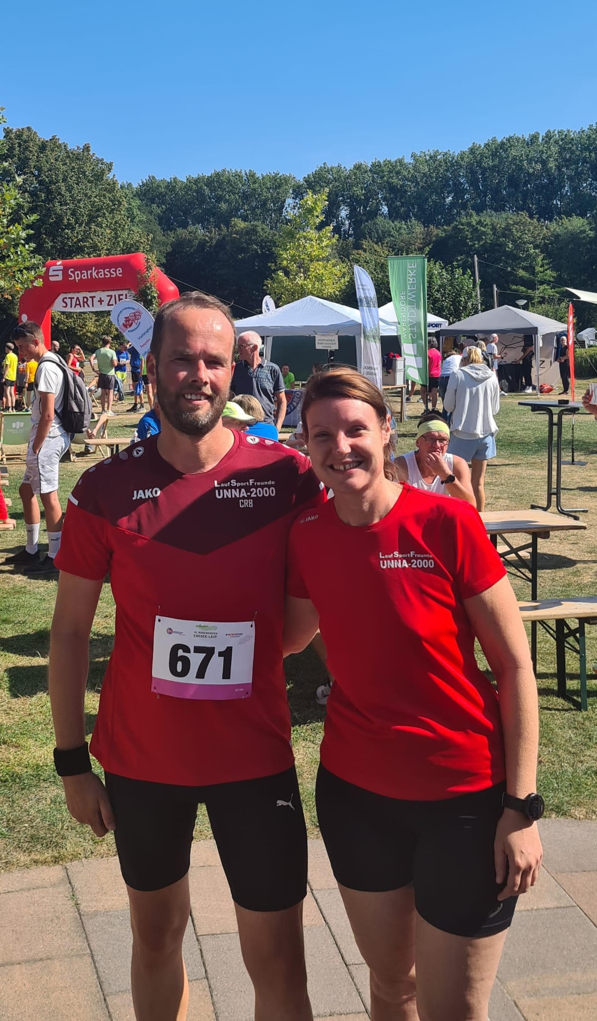 Christoph Rauf nutzte den 42. Warendorfer Emssee-Lauf am vergangenen Samstag als Trainingslauf für die Marathon-Vorbereitung. Er finishte bei seinem ersten Lauf für die Laufsportfreunde-Unna- 2000 über die Halbmarathon-Distanz in 2:02:14 (4. Platz AKM45). Celina Werbinsky lief über die 10 km Distanz in 1:04:31 (8. Platz AKW40) ins Ziel. |
