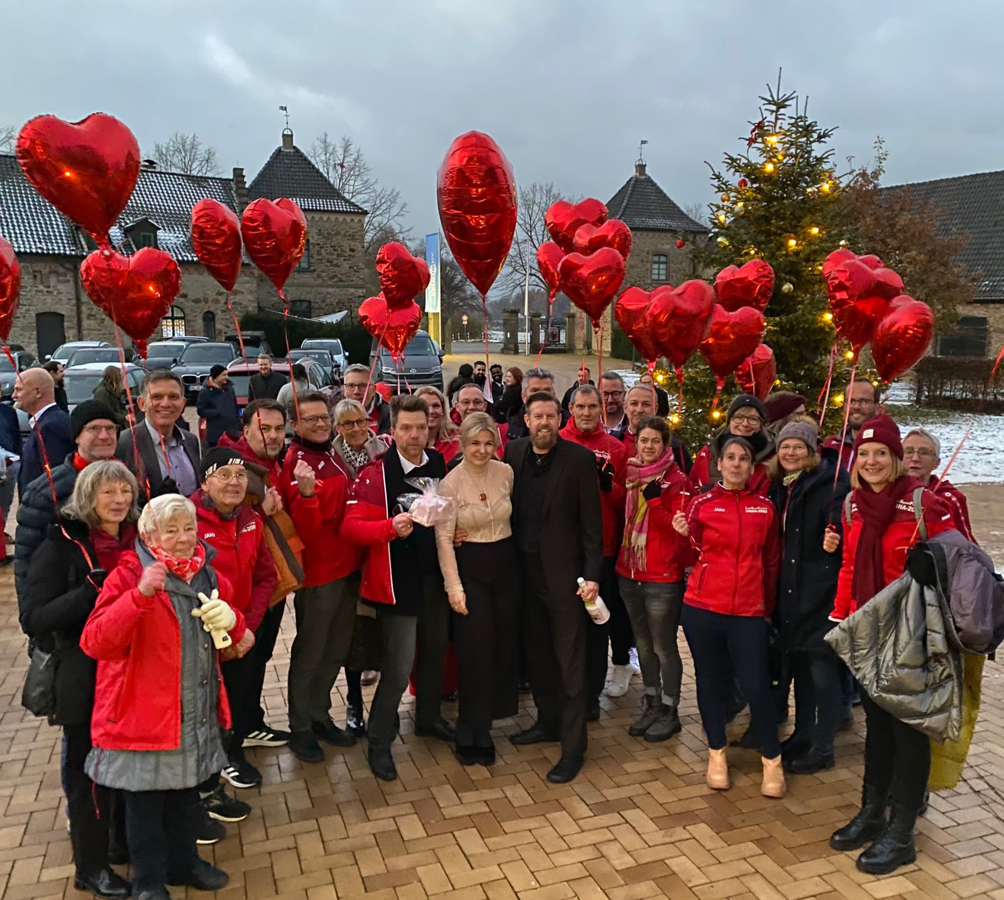 Sie standen mit Herzluftballons für das glückliche Brautpaar Spalier.