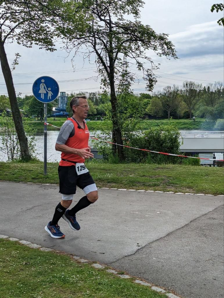 Er lief den 10 km Hauptlauf mit 2 Runden und finishte in 47:43 Min.